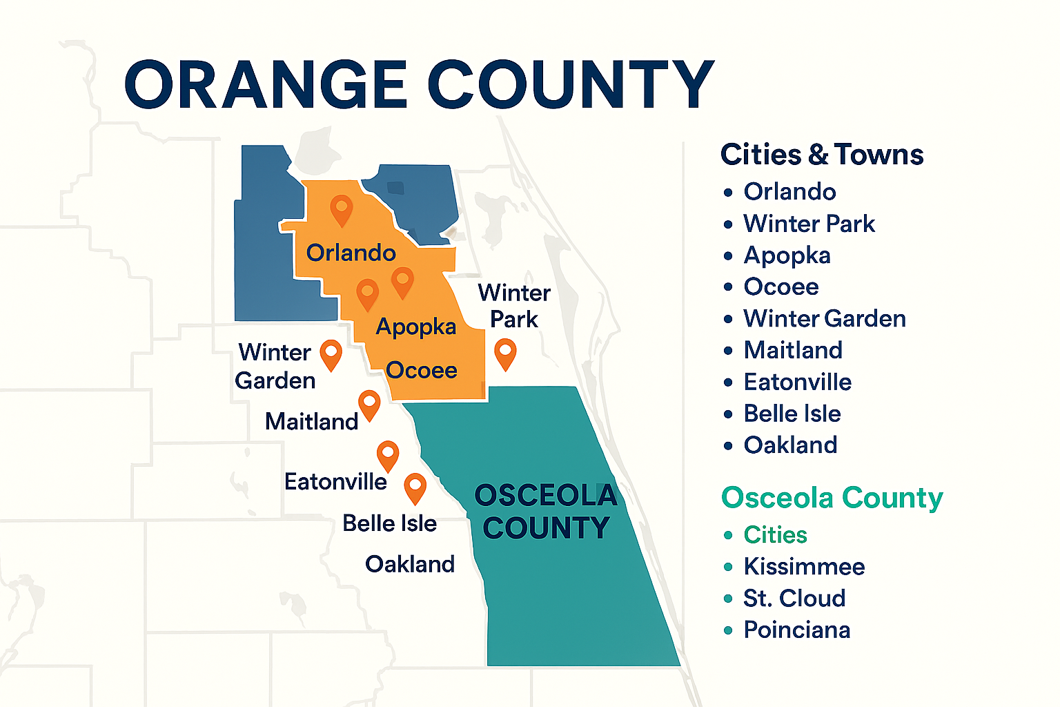 - Hunters Creek (partially in Orange)