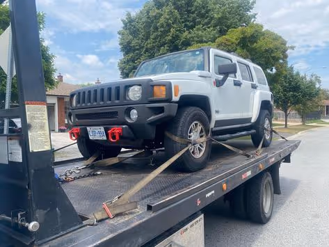 Licensed tow team arrives, loads your vehicle, and hauls it away at no cost.
